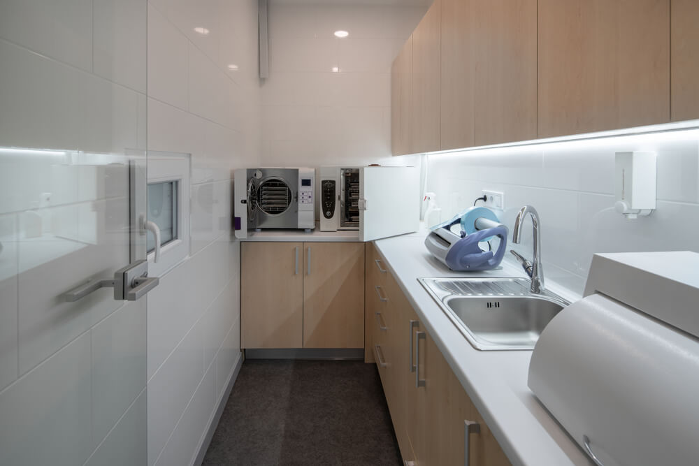 The pre-fabricated sterilization centers manufactured by dental equipment companies are designed to make this process intuitive and seamless, with dedicated cabinets, surfaces and storage: a place for everything, and everything in its place.