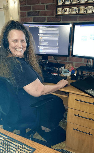 Janet Koval, an HRIS analyst at Benco Dental is shown working from home.